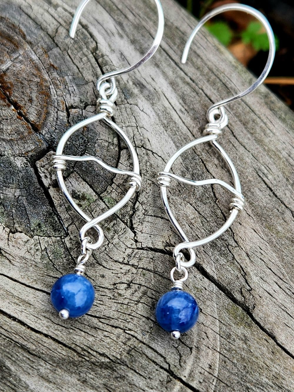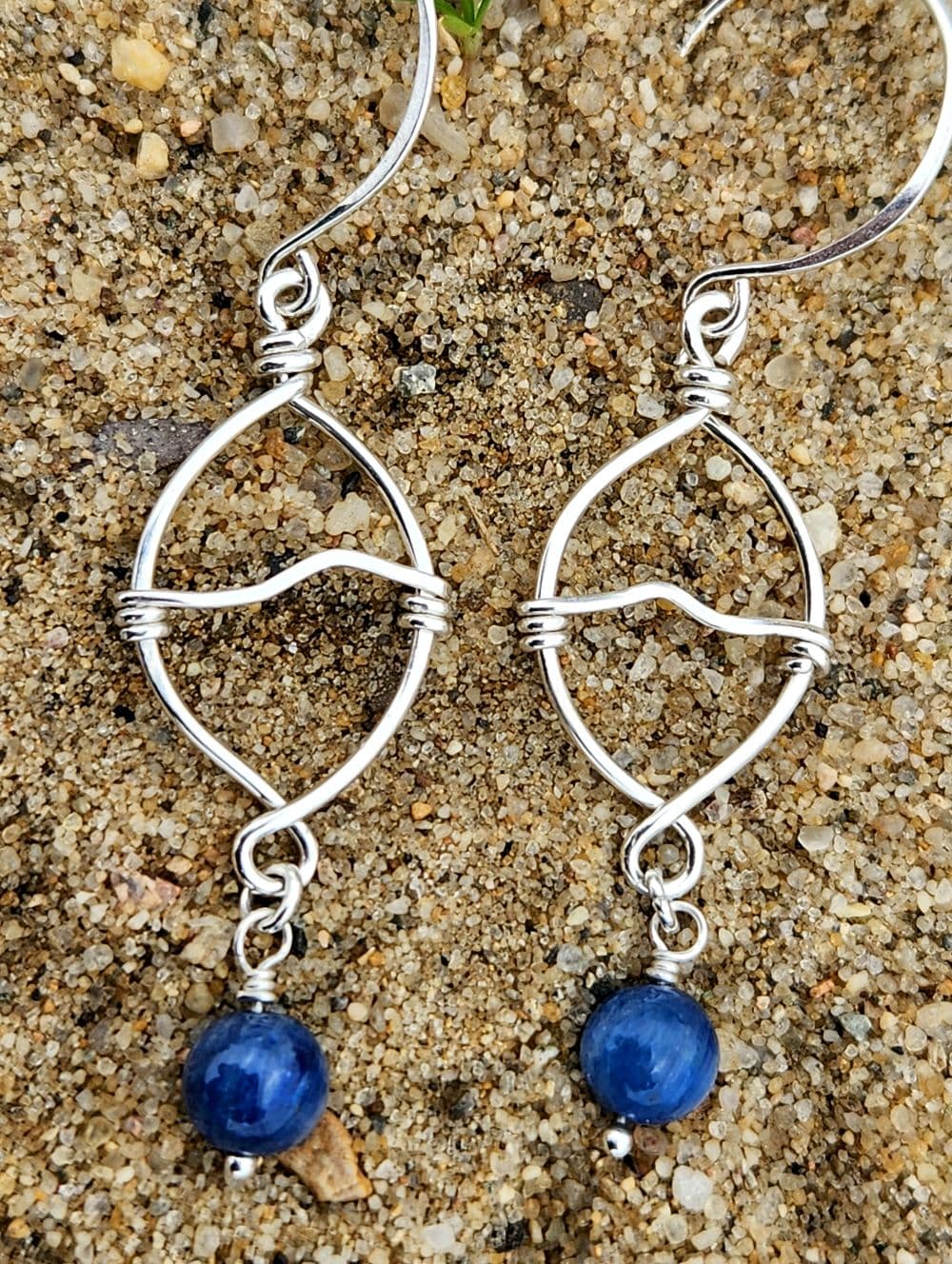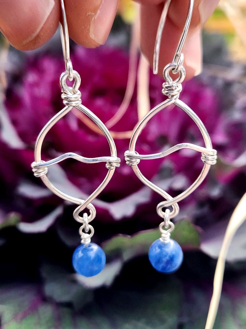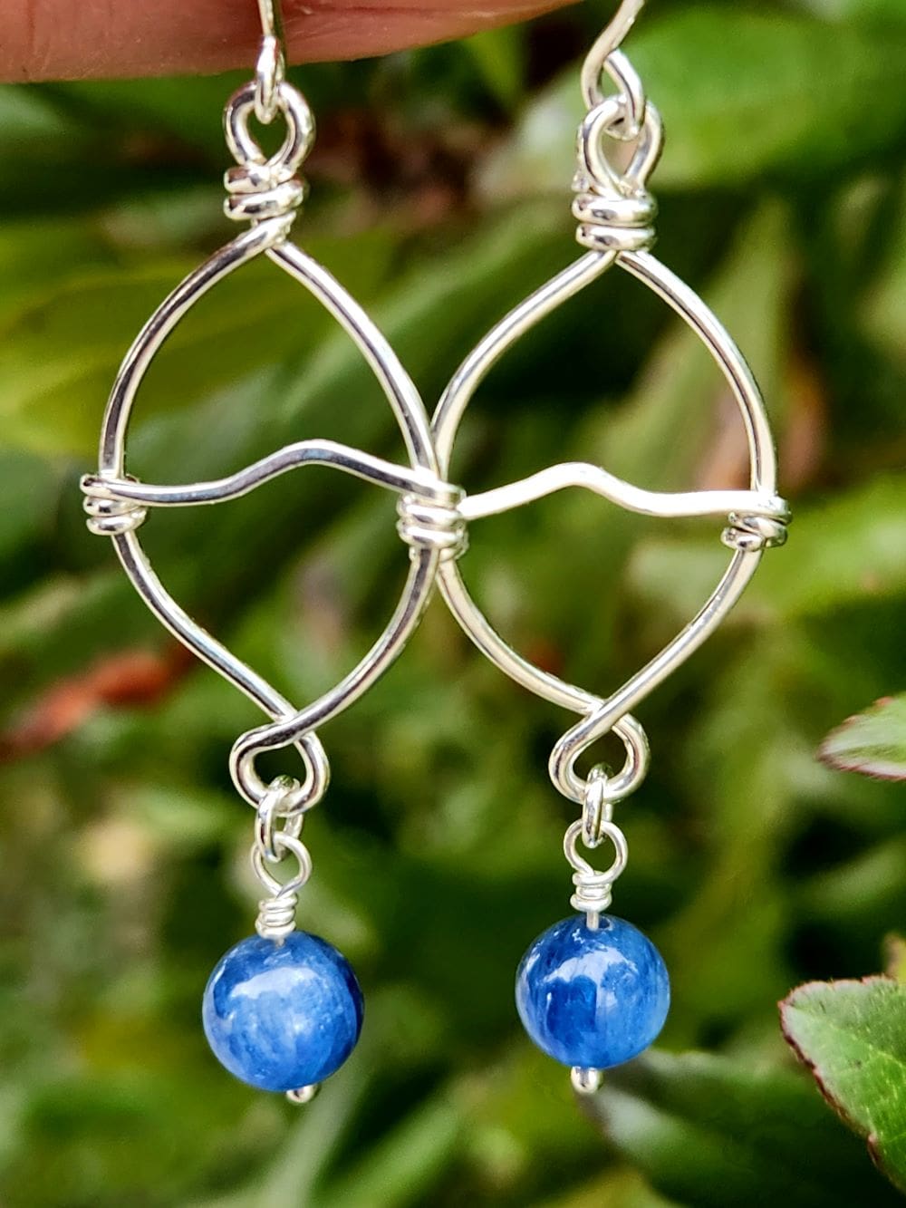 These wire-wrapped kyanite earrings were made to reflect the deep strength that lives inside you – steady, building, and ready to move.
